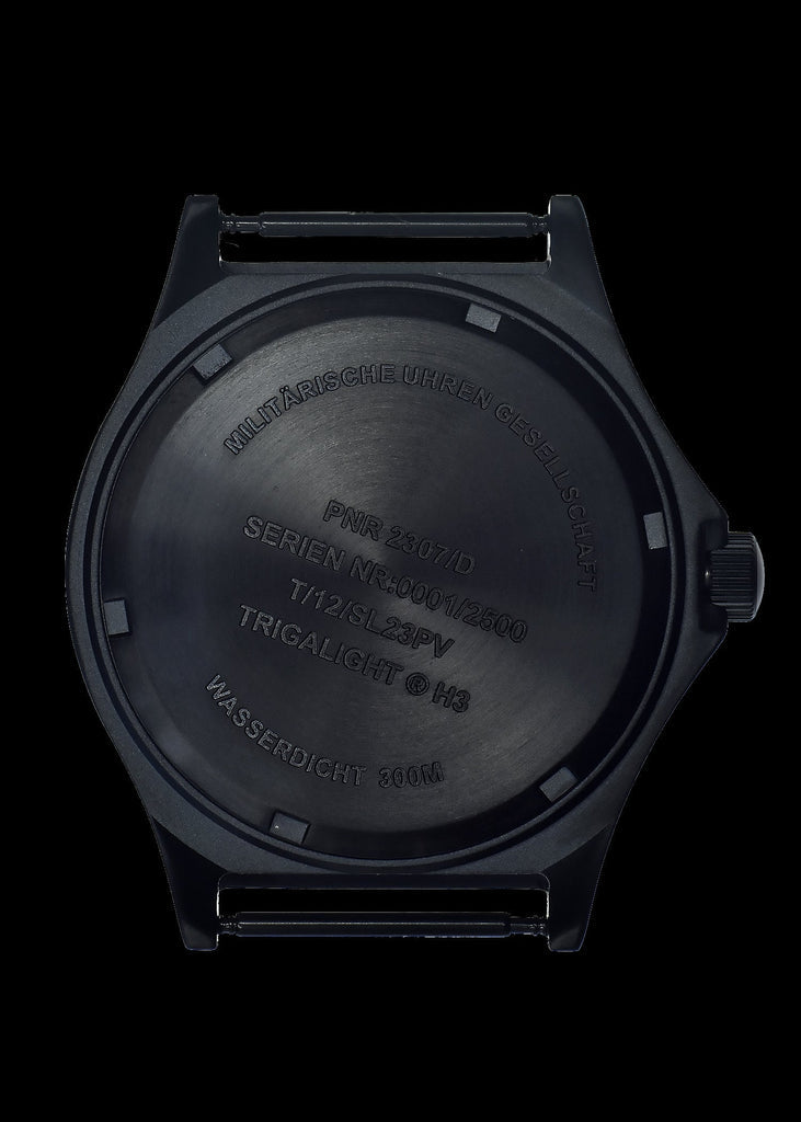 The MWC 300m Black PVD titanium G10 with a Swiss Ronda 715li movement is one of our highest specification general service watches, it’s by far the highest specification watch of its type manufactured anywhere worldwide. Essentially this model combines the best of both new and traditional watchmaking technology. It retains all the popular features from the conventional 300m steel models but the titanium case, ultra low maintenance movement, cutting edge self luminous GTLS tritium vials which provide unbeatable night visibility set this apart from it’s competitors, now add in the shatter and the scratch resistant sapphire crystal and it's clear this is the ideal timepiece for all military, law enforcement and security applications.