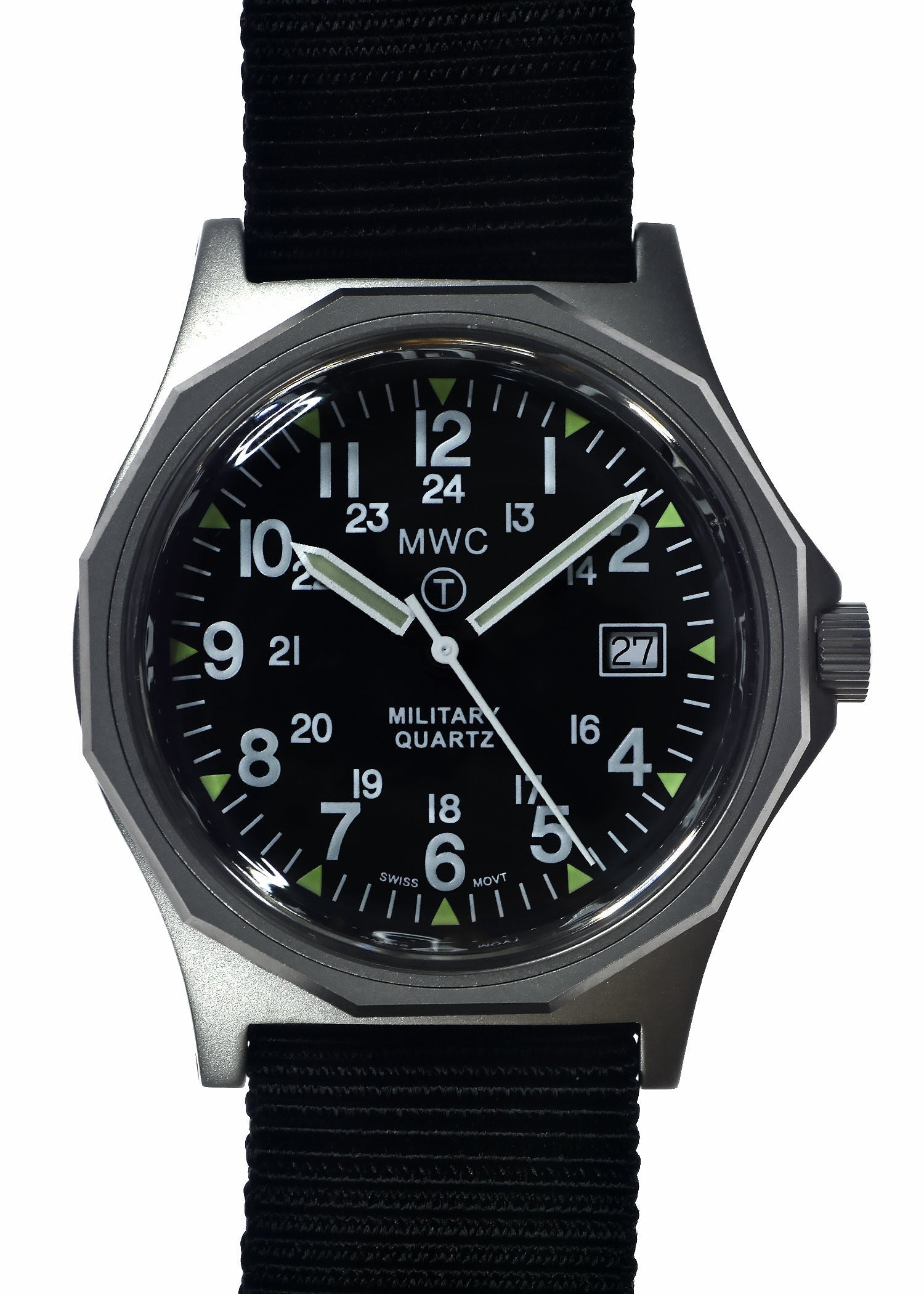 The back of the case bears a unique serial number and the watch is supplied with a black military webbing strap and is in a box which carries the original 1974 pattern MWC logo which has not been used for well over 20 years.