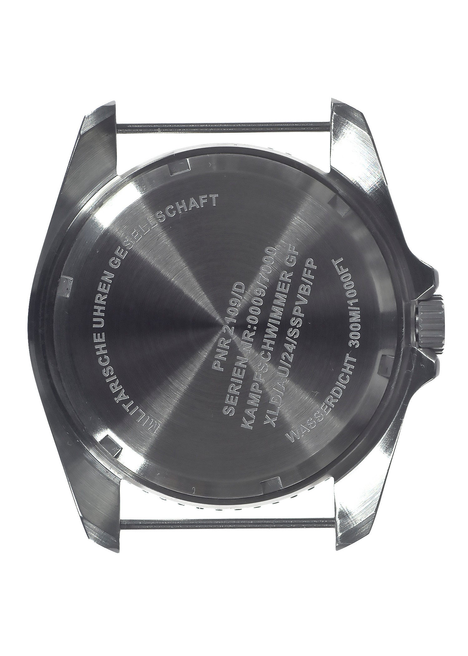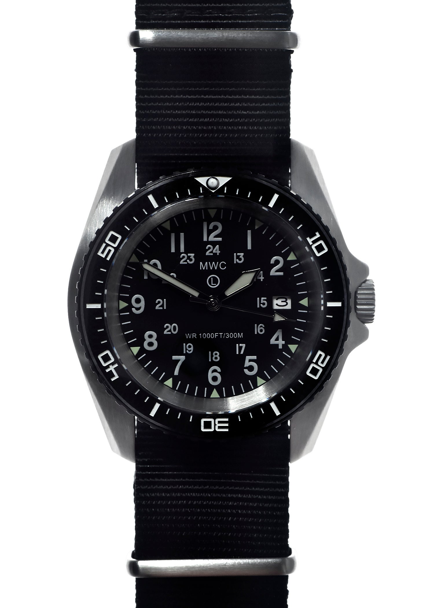 The MWC Kampfschwimmer (Military Diver) models are one of MWC's latest heavy duty range of divers watches and have a significantly more robust case than most other military dive watches, they also have additional crown protection, in addition this model also has the advantage of an impact resistant sapphire crystal and a scratch resistant ceramic bezel. These models also use a wider strap at 24mm (most military divers watches use a 20mm strap) and a thicker bezel design. The thicker bezel makes it significantly easier to grip which is a feature which was specified in a procurement contract because these watches were specifically designed for use by Police and Military divers as well as for use in inflatables operating in cold and extreme environments. This watch is the same as product code XLD/AU/24/SSPVB the only difference is that it has solid strap bars which are sometimes required for challenging military and tactical environments.