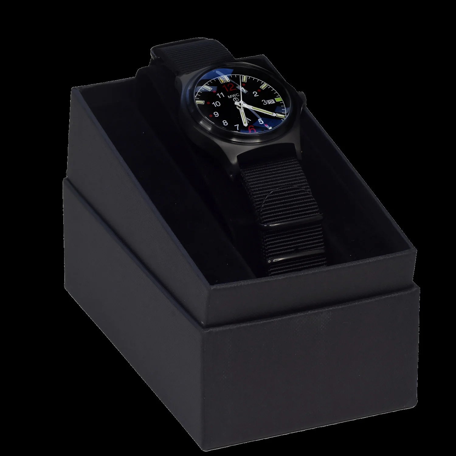 - Strap: Black 20mm NATO strap