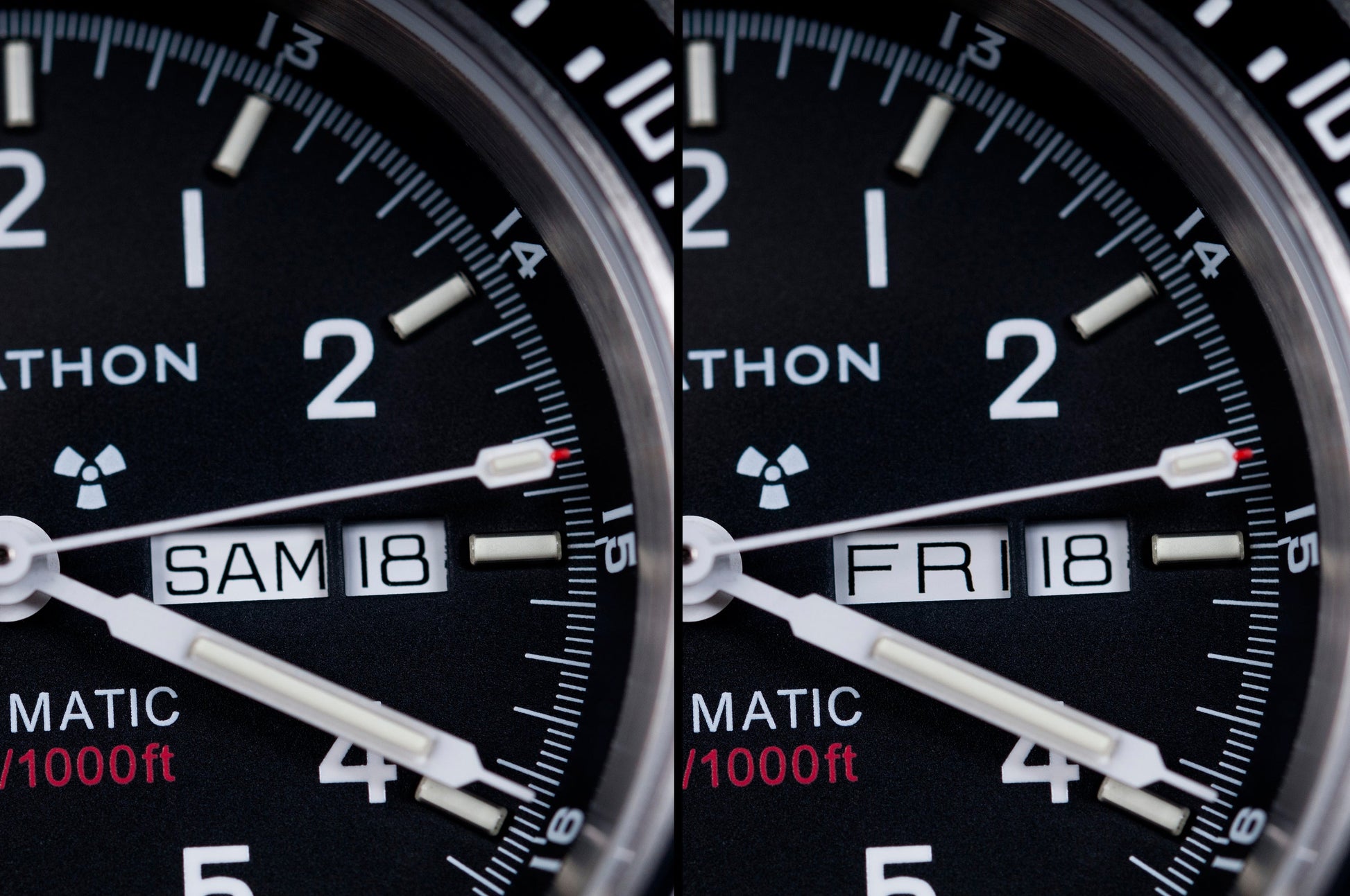 The JDD is powered by a Swiss-made Sellita SW220-1 automatic movement with Incabloc™ shock absorber and features 25 jewels. It also boasts a bilingual day/date window that displays in both English and French, making it ideal for use in multinational military operations.