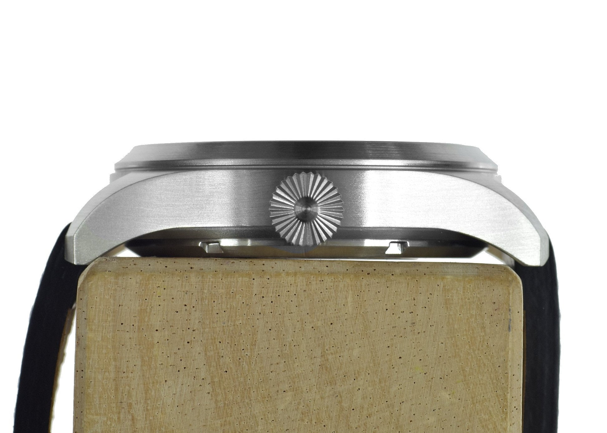 This model has a traditional automatic 24 jewel NH35A mechanical movement which is visible through the clear caseback the movement has a 41 hour power reserve when fully wound.