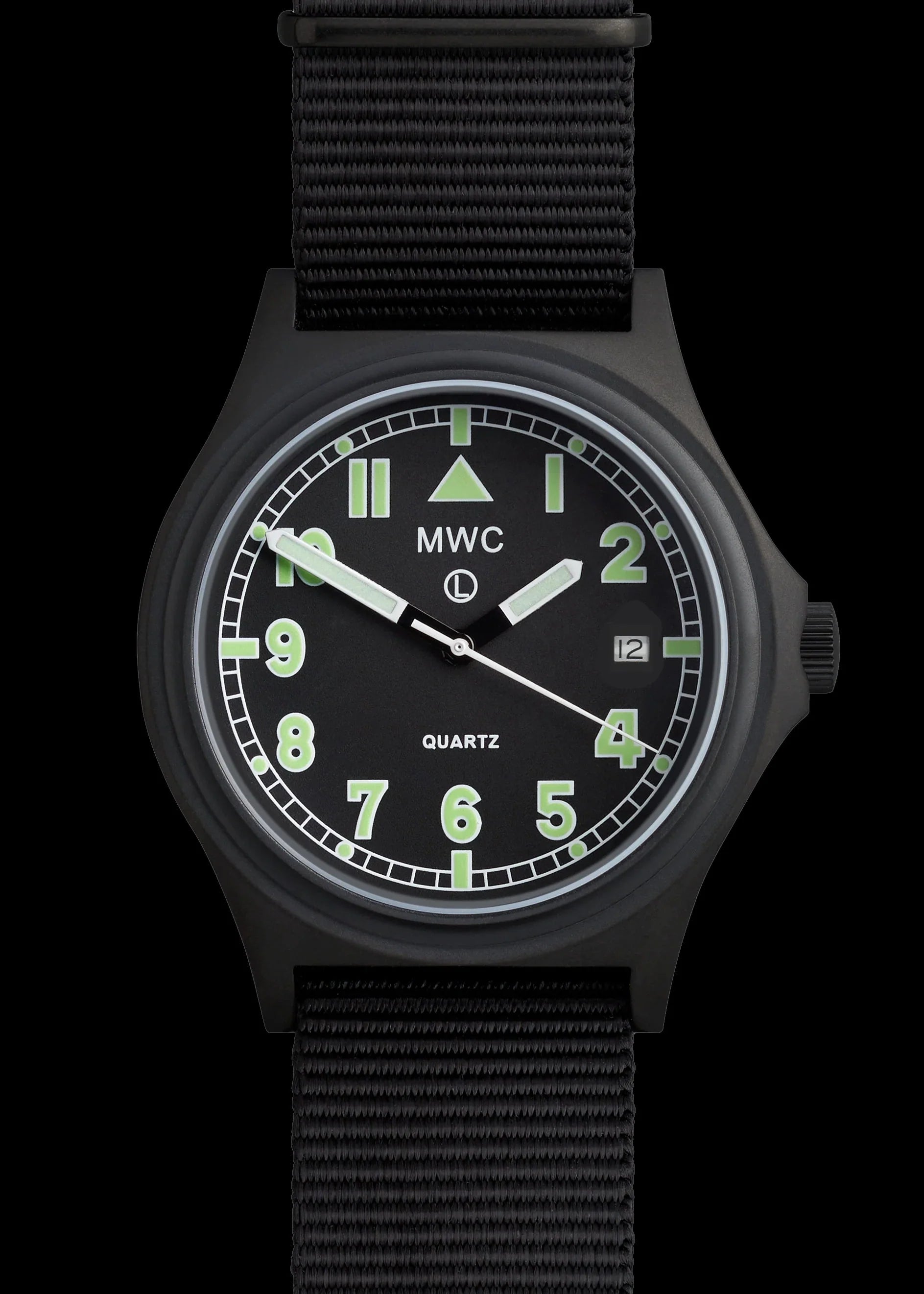 The watch is supplied a current issue heat welded black NATO webbing strap.