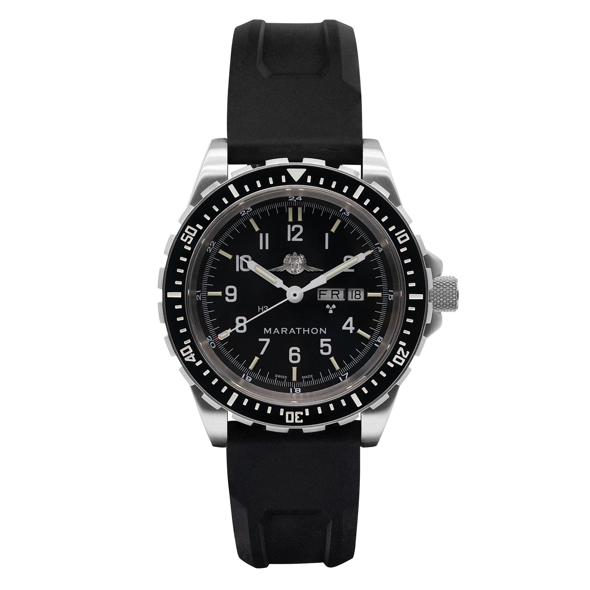 Marathon's Official IDF YAMAM™ Jumbo Day/Date Automatic (JDD) is commonly known as the Jumbo Day/Date (JDD). This rugged military watch is designed to meet the rigorous demands of military operations and is built to be highly durable, reliable, and accurate.