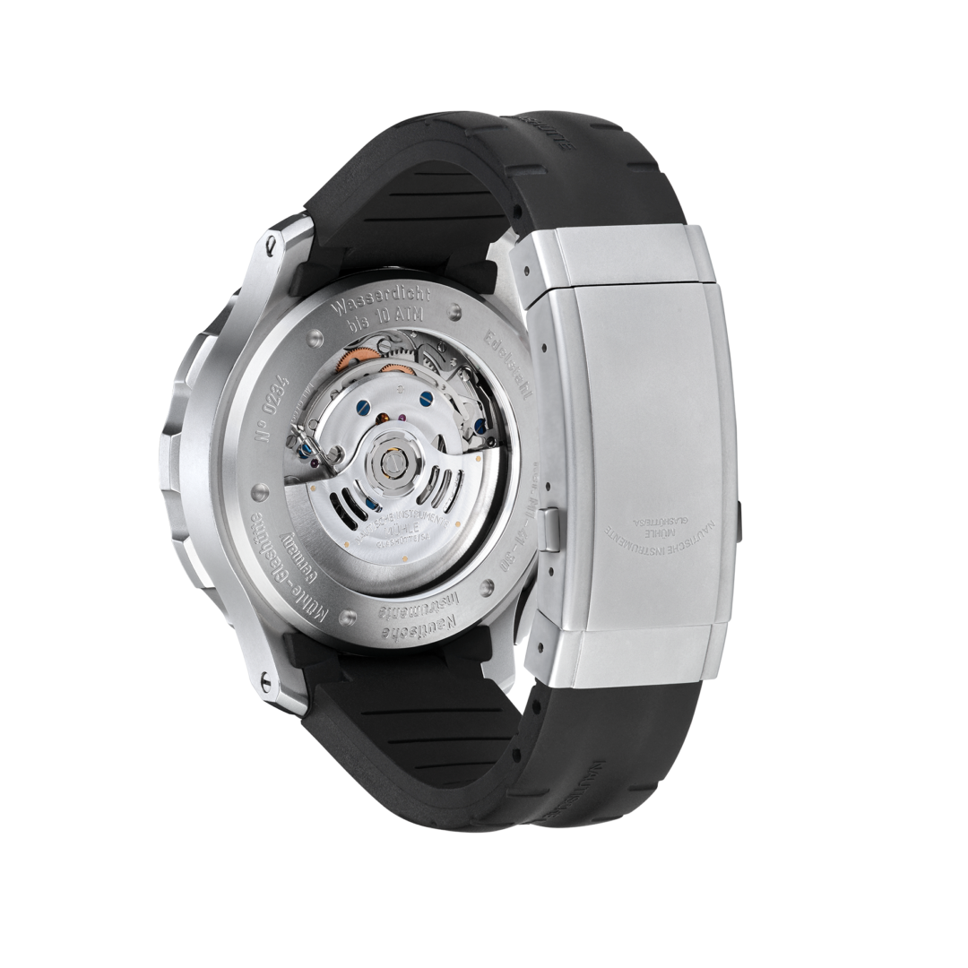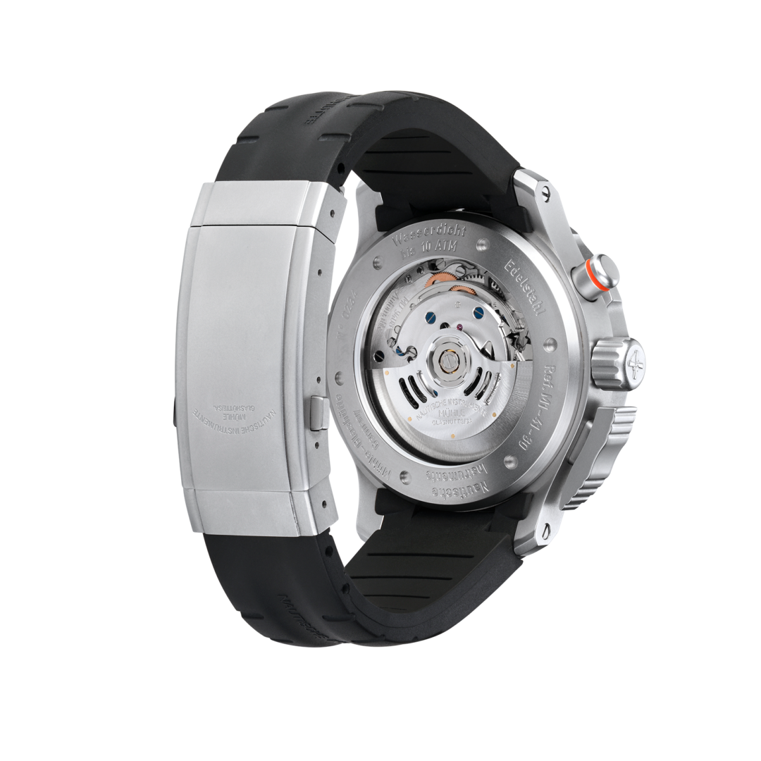 The S.A.R. Flieger-Chronograph was created in 2010 in cooperation with the rescue pilots of the German Navy. They were looking for a robust, easy-to-read chronograph that could be used to calculate flight speeds, among other things. The Mühle tool watch meets these requirements thanks to its highly reliable fine regulation and specially designed chronograph functions with a highlighted 10-second scale. The idea to develop such a watch came from the Sea King crews themselves. Because even if their helicopters are equipped with robust technology: for them, the time on the wrist still provides the basis for time measurements that are necessary for navigation.