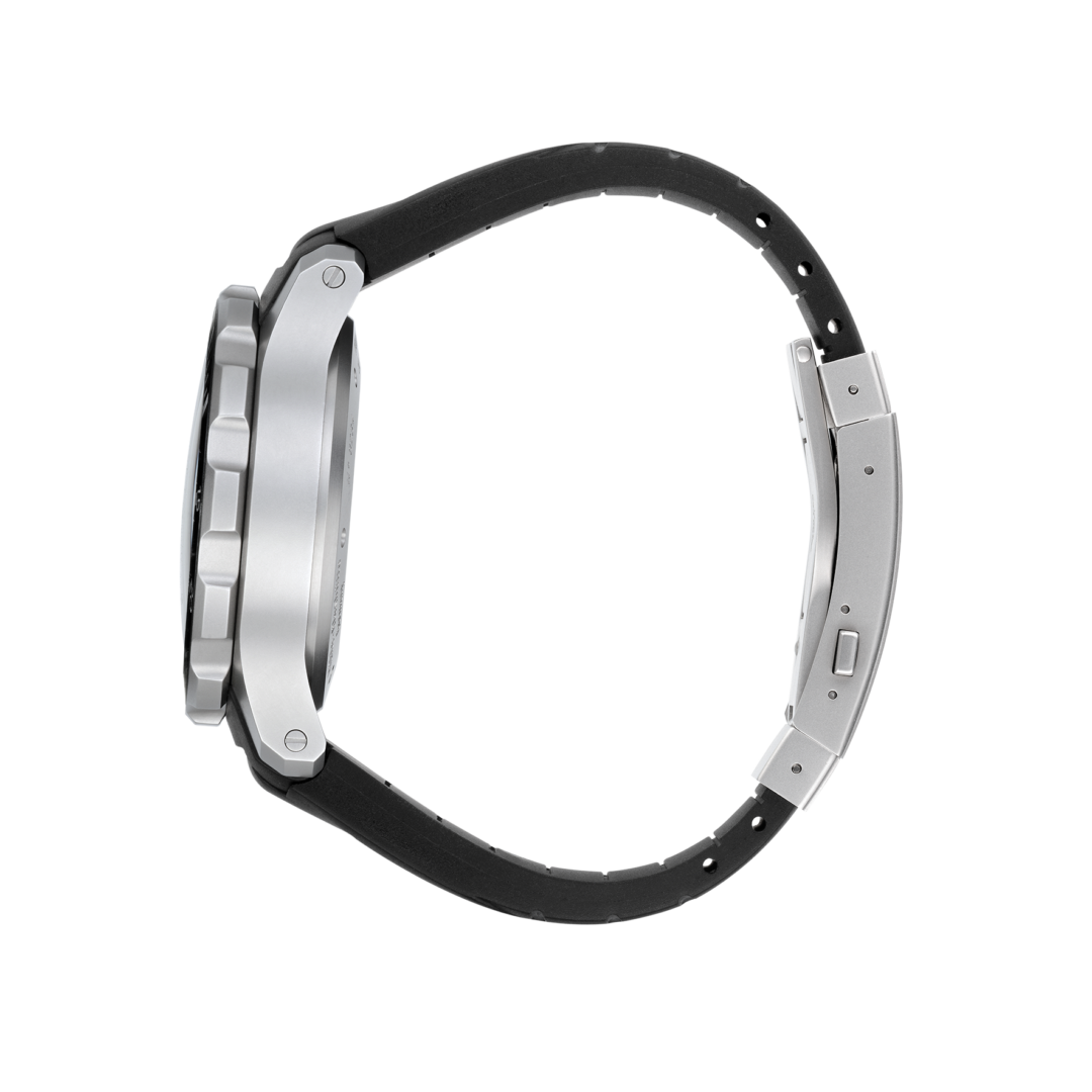 Case: Stainless steel. Bidirectional rotating bezel. Non-reflective sapphire glass. Back with transparent window. Screw-down crown.